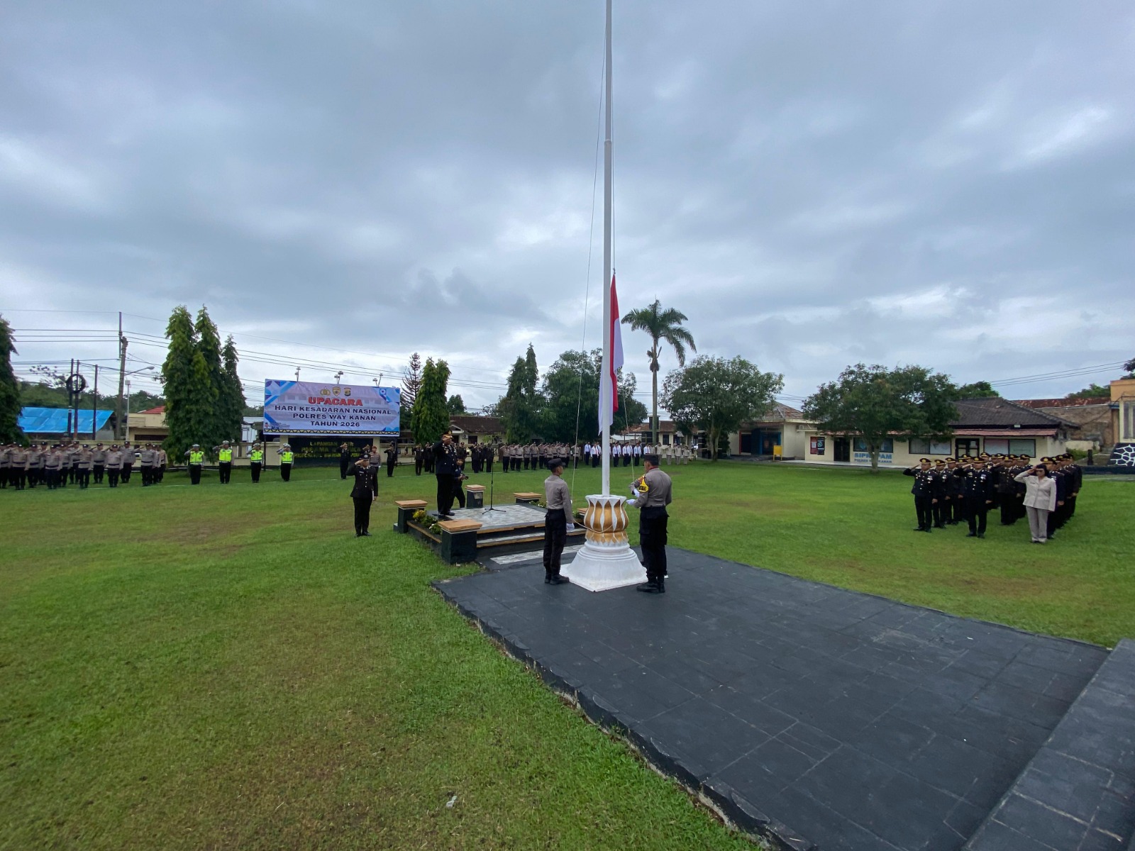 Pada saat ini, selain kita melaksanakan upacara hari kesadaran nasional kita juga melaksanakan penganugerahan tanda kehormatan berupa satya lencana pengabdian personel Polres Way Kanan Tahun 2026.
