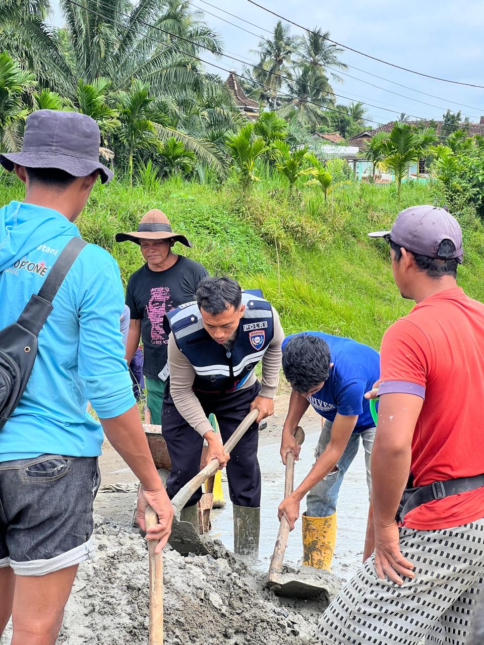 Salah satunya Bhabinkamtibmas Kampung Bali Sadhar Tengah Brigpol I Gede Eka P bersama Aparatur Kampung dan masyarakat sekitar melaksanakan kegiatan gotong royong pengecoran jalan poros bertempat di Kampung Bali Sadhar Tengah Kecamatan Banjit Kabupaten Way Kanan
