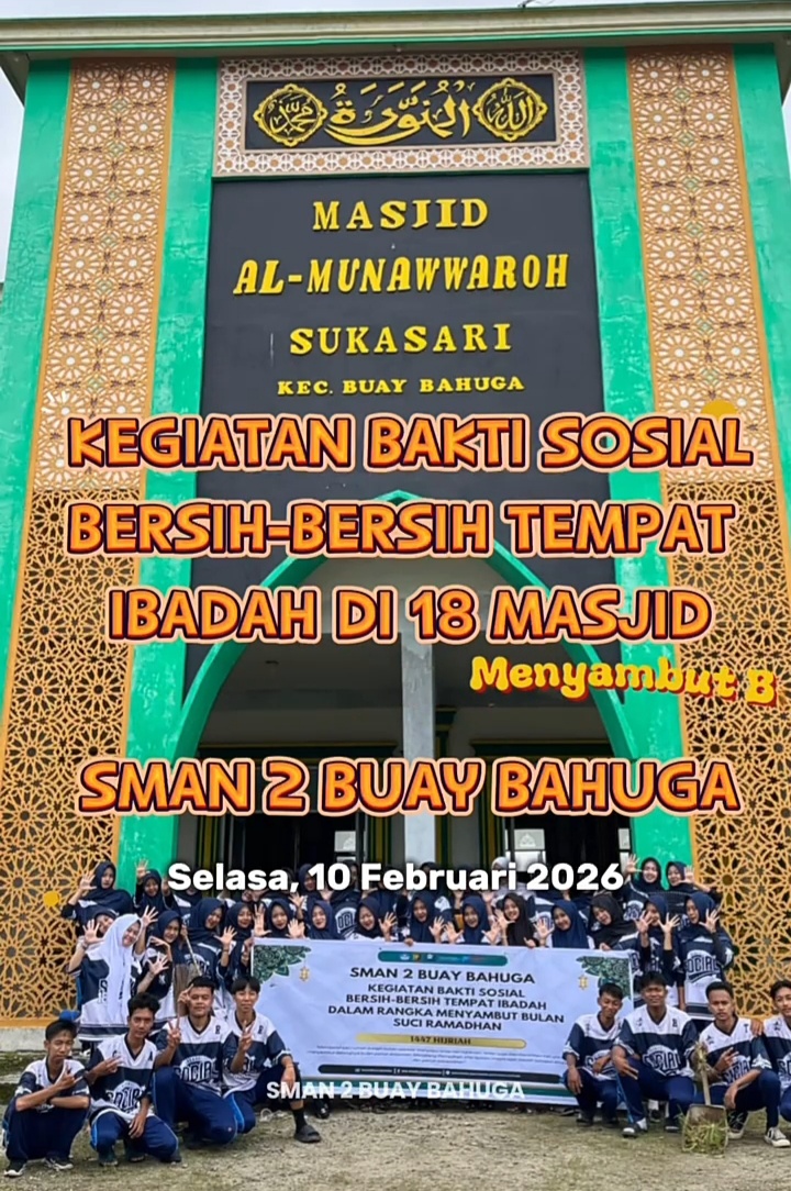 Way Kanan – Semangat berbagi dan kepedulian sosial di bulan suci Ramadhan ditunjukkan oleh SMAN 2 Buay Bahuga, Kecamatan Buay Bahuga, Kabupaten Way Kanan. Melalui kegiatan bhakti sosial, sekolah tersebut melaksanakan aksi bersih-bersih di 18 masjid yang tersebar di wilayah Kecamatan Buay Bahuga.