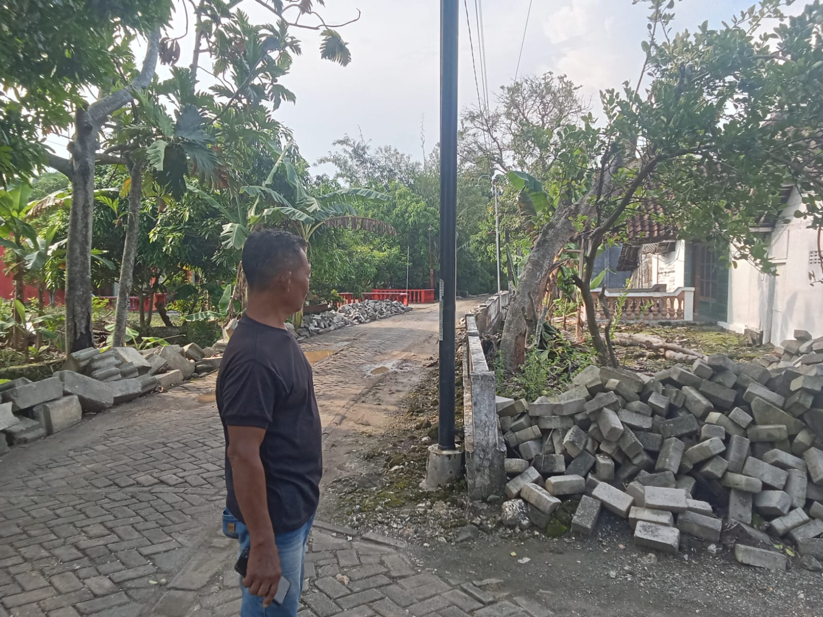 Hingga laporan ini disusun, belum ada keterangan resmi dari pemerintah desa maupun instansi terkait mengenai status material paving tersebut—termasuk siapa yang bertanggung jawab dan bagaimana rencana penanganannya.
