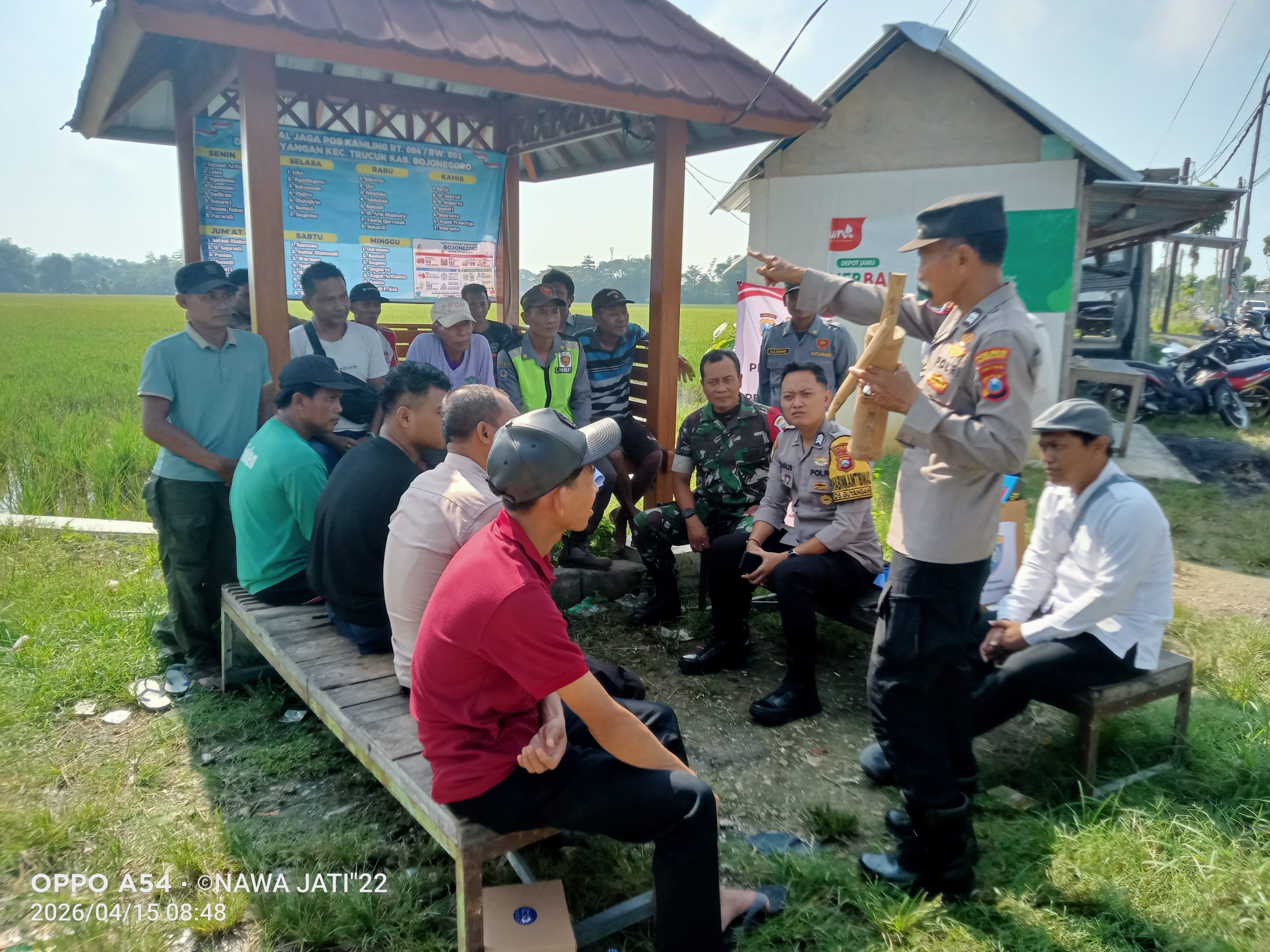 Kegiatan yang melibatkan unsur kepolisian, TNI, linmas, dan warga tersebut digelar di prapatan desa setempat. Dalam kesempatan itu, perwakilan Polres Bojonegoro, Fauzi, menekankan pentingnya peran aktif masyarakat dalam menjaga keamanan lingkungan.